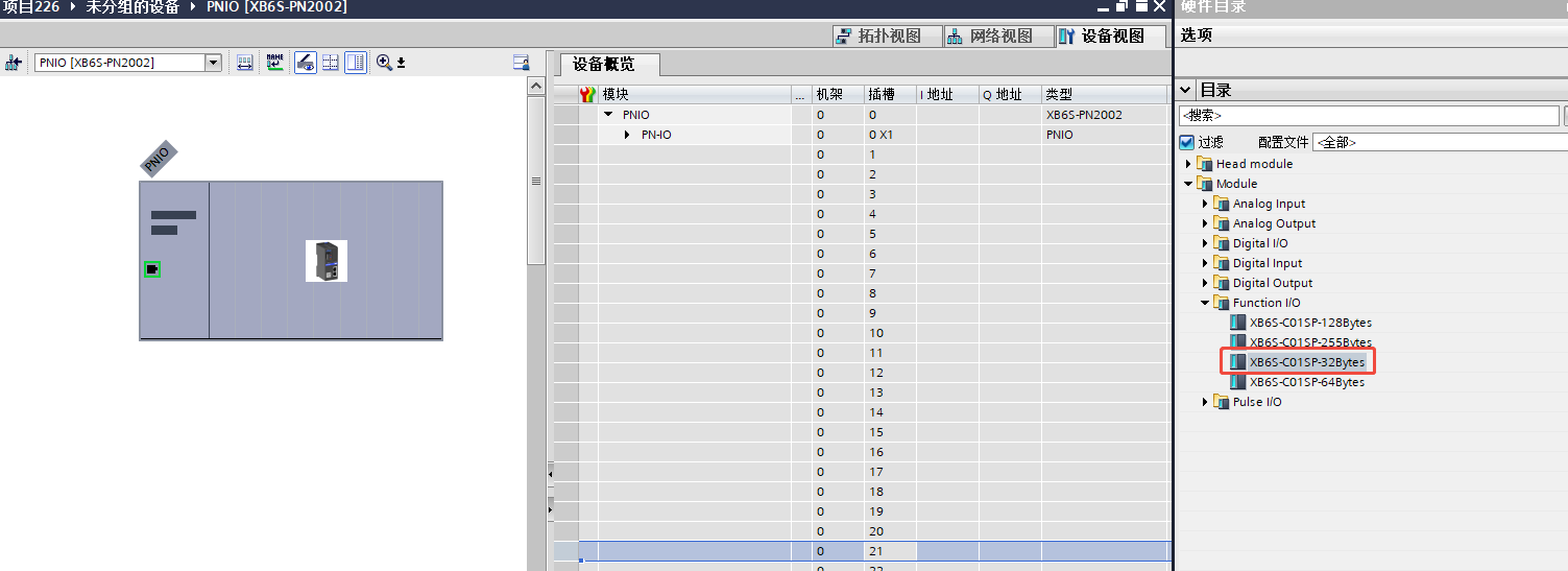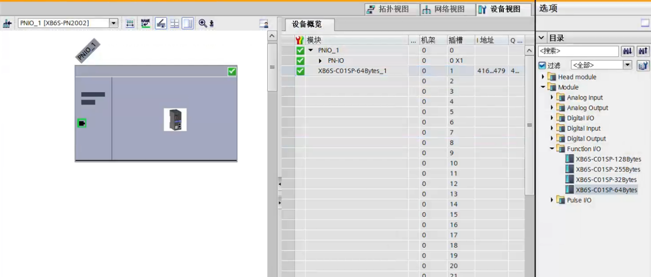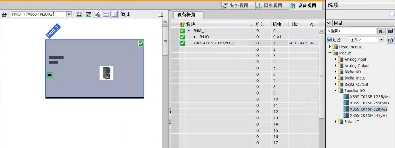 模块出厂默认为XB6S-C01SP-32Bytes,上下行数据长度各32Bytes。在初次上电配置时,选择32Bytes组态即可,正确分配耦合器设备名称后,一般可以成功连接。