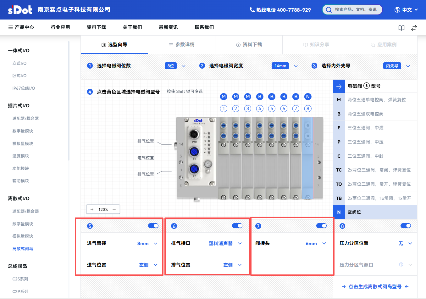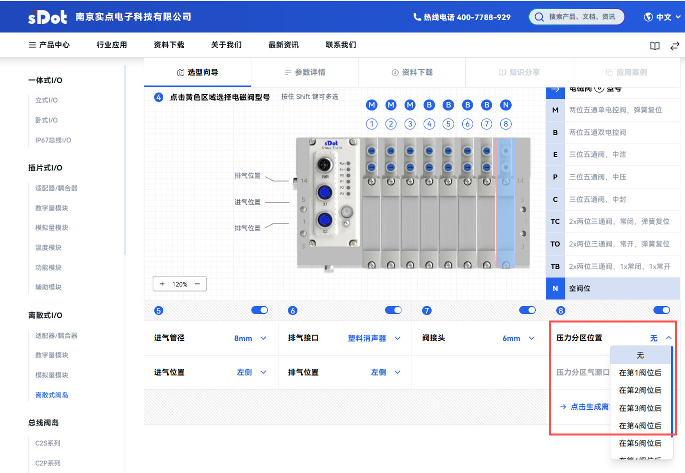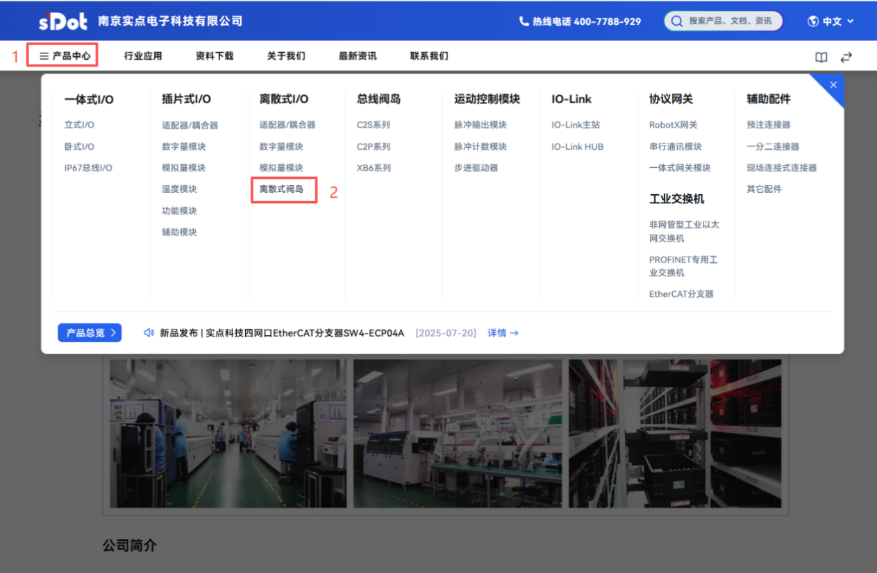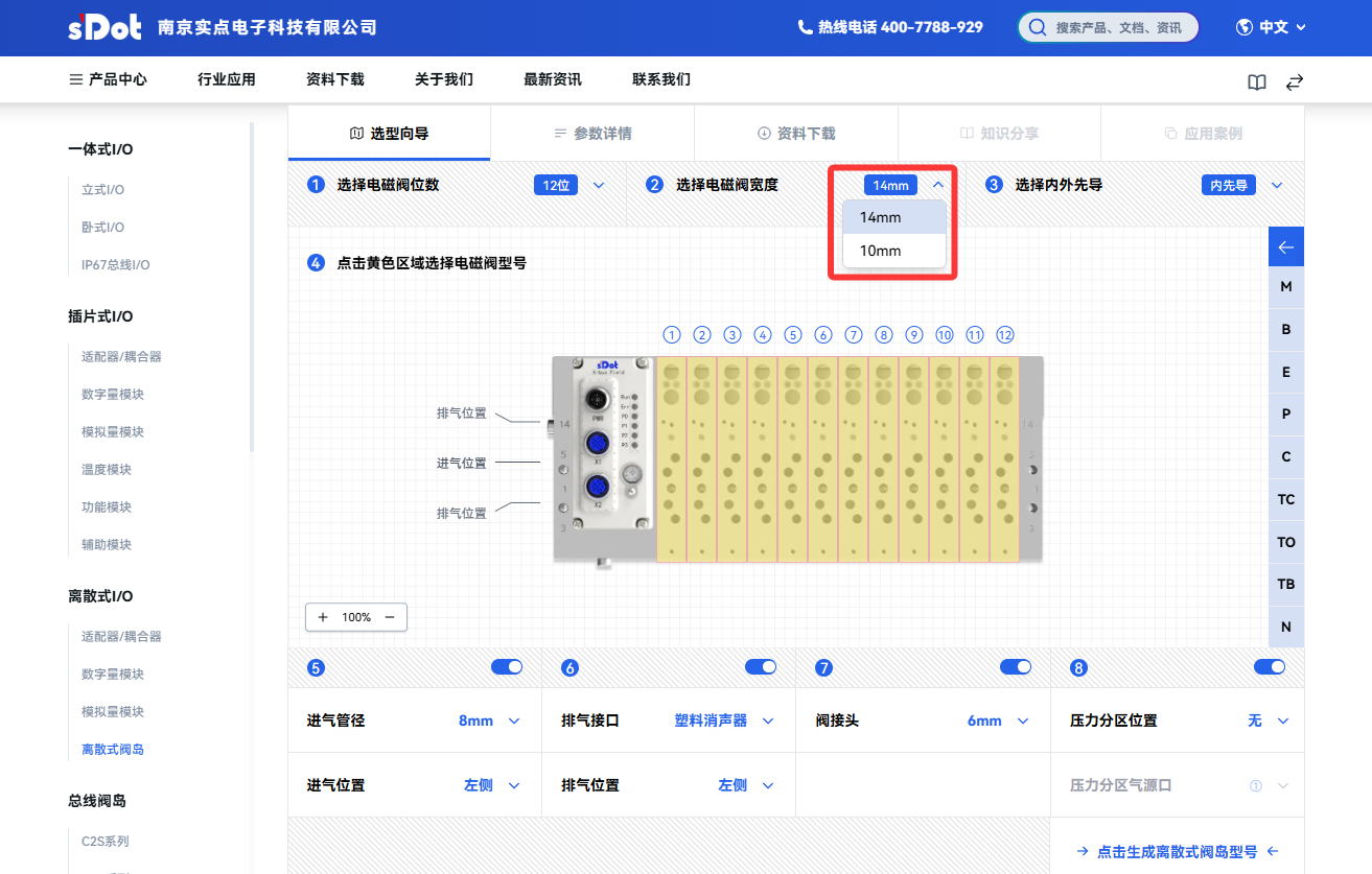 1、访问实点科技官网(https://www.solidotech.com),随后参照下列图示顺序,进入C3系列离散式阀岛选型页面。