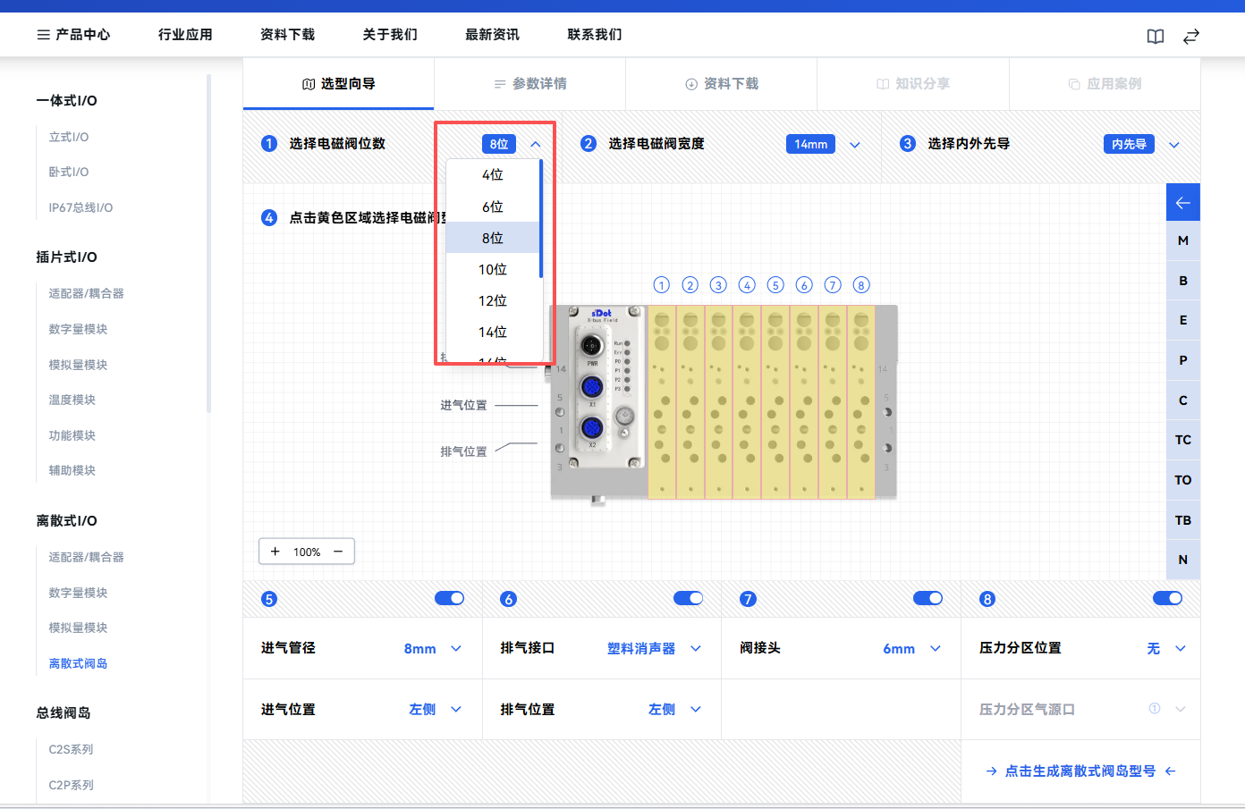 8、完成上述所有配置后,点击“生成离散式阀岛型号”,系统将自动生成对应的阀岛完整型号。