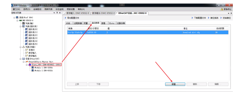 双击“EC耦合器”,选择启动按钮参数,点击下面的“新建”按钮,找到对应模块的Config参数,更改值到所需配置,点击确定,下载生效。