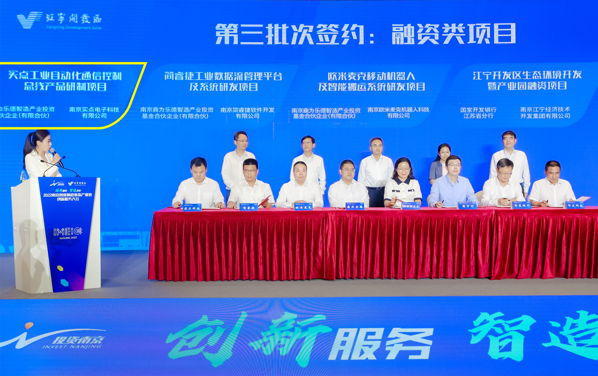 7月1日,“2022南京智能制造装备产业链创新服务大会”在江宁开发区大数据中心举行,作为江宁开发区重点扶持智能制造装备企业,实点科技受邀参加大会,并与产业基金完成“实点工业自动化通信控制总线产品研制项目”融资签约。
