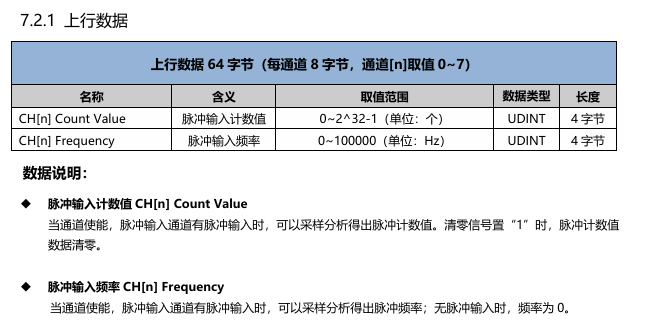 The read data consists of the count values and speeds for eight channels. The write data controls the enable and count clear switches for the eight channels.