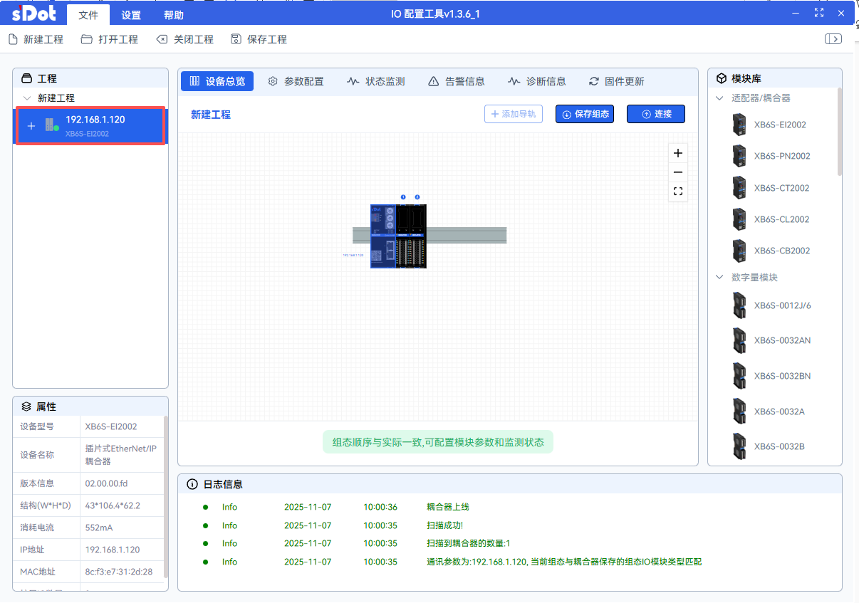 After a successful scan, you can see that the coupler's IP has been updated.