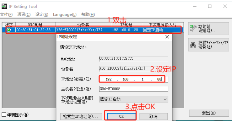 If modification fails, it might be because the software does not support cross-subnet scanning. Change the computer's subnet to the "1" subnet (e.g., 192.168.1.x) and scan again to verify if the change was successful.