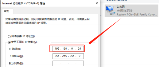 2.Connect the computer directly to the product using an Ethernet cable. Set the computer's IP address to the "0" subnet (e.g., 192.168.0.x). The product's default IP is 192.168.0.120.