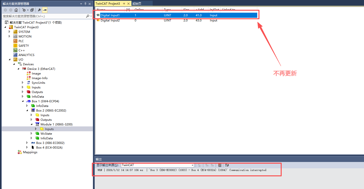 When using an EtherCAT distributor in star or line topology, you may encounter this situation: disconnect one slave, and the I/O data of other slaves stops updating.