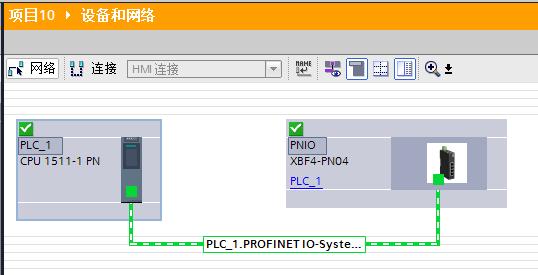 Create a new project in TIA Portal, complete the network configuration between the S7-1500 PLC and the XBF4-PN04 coupler, and confirm that normal PROFINET communication has been established between the PLC and the coupler.