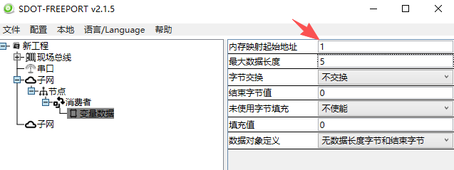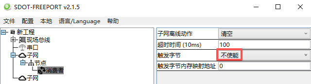 Right-click the "Subnet" to add a "Node", then right-click the "Node" to add a "Consumer". Keep the slave address as the default value of 1 (currently non-functional).