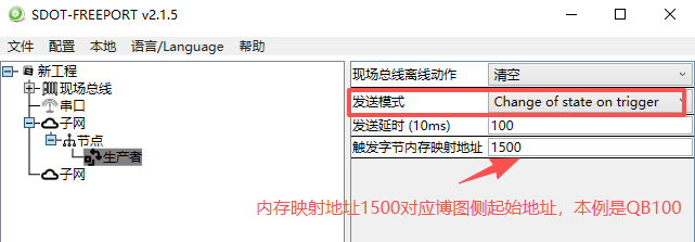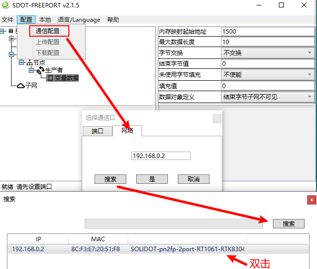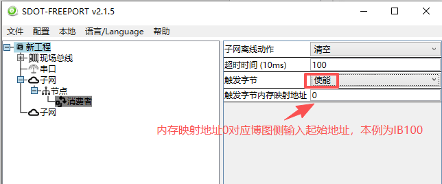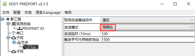 Download the Solidot PN4-GW2FP configuration software "SDOT-FREEPORT", create a new project, select "Producer-Consumer Model" as the working mode, and choose the physical standard based on the actual situation. In this example, a USB-to-RS232 serial cable is used, so "RS232" is selected.