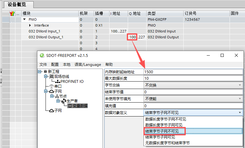 (Must not conflict with the Trigger Byte Memory Mapping Address set above). This corresponds to the QB address in TIA Portal. In this TIA Portal example, it is QB101.