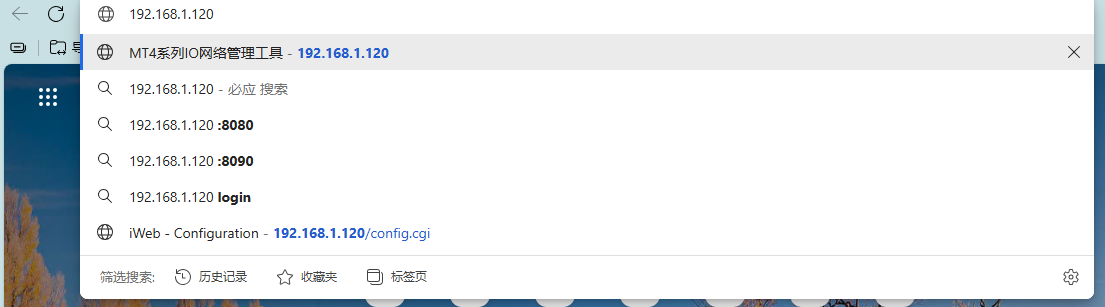 First, locate the corresponding module and wire it correctly according to the diagrams in the wiring chapter of the MT4 Series All-in-One I/O User Manual. After powering on and connecting the module to your computer via an Ethernet cable, enter the module's default IP address, 192.168.1.120, into your browser to access the configuration interface, as shown below: