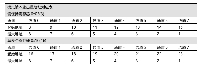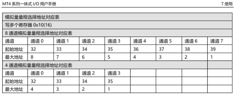 Changing the analog range requires writing values to the corresponding address for each channel. The address for each channel is shown in the table below: