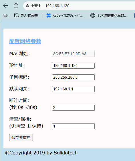 After modifying the configuration parameters, click "Save and Reboot" below. Wait for the module to restart automatically for the changes to take effect.