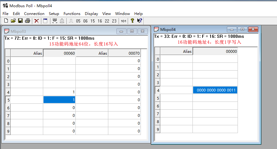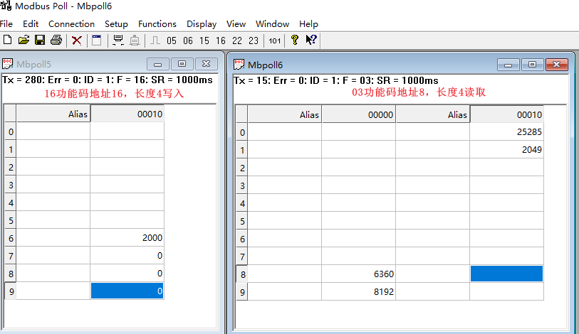 Inputs can be read using Function Code 03, and outputs can be written to using Function Code 16, as shown below: