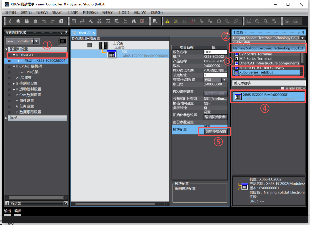 ⑤ On the EtherCAT main page, select the newly added XB6S-EC2002 coupler and click "Edit Module Configuration".